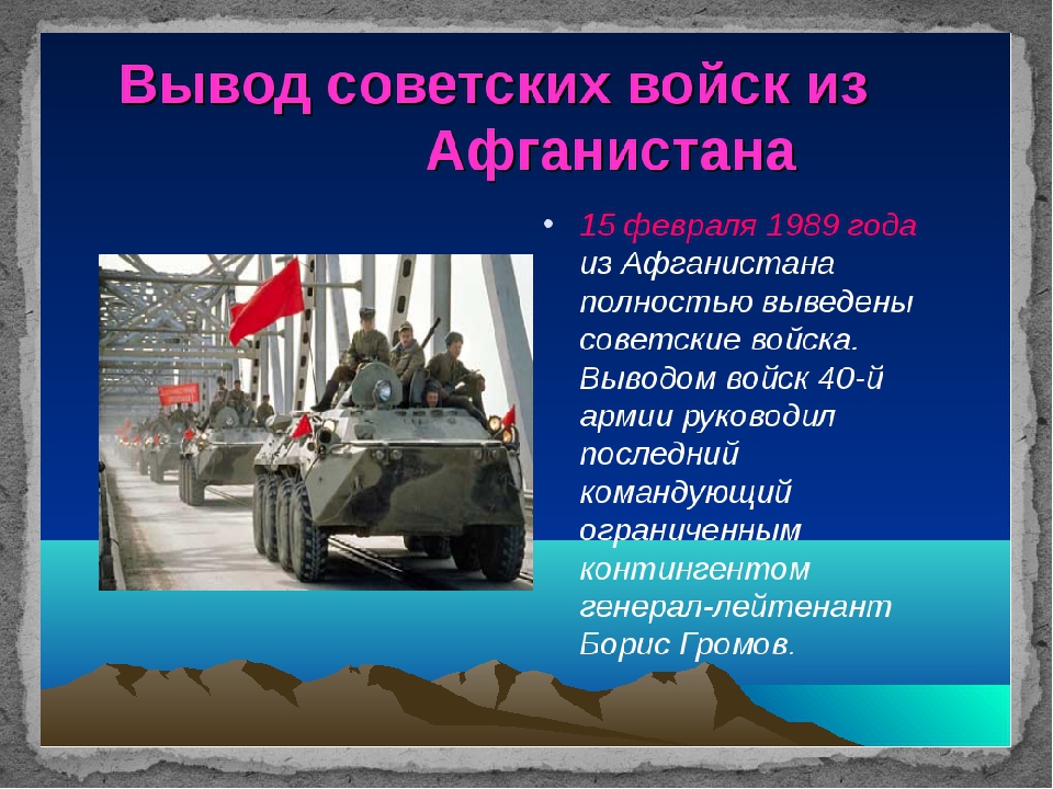 День памяти придал официальный статус памятным мероприятиям, посвященным исполнению россиянами служебного долга за пределами Отечества, традиционно проводимым ветеранами войны в Афганистане 15 февраля (день вывода советских войск из этой страны). В этот день в 1989 году последние подразделения Ограниченного контингента советских войск вернулись на Родину из Афганистана, где в условиях сложной обстановки советские солдаты и офицеры стойко и мужественно противостояли силам международного терроризма и наркобизнеса.