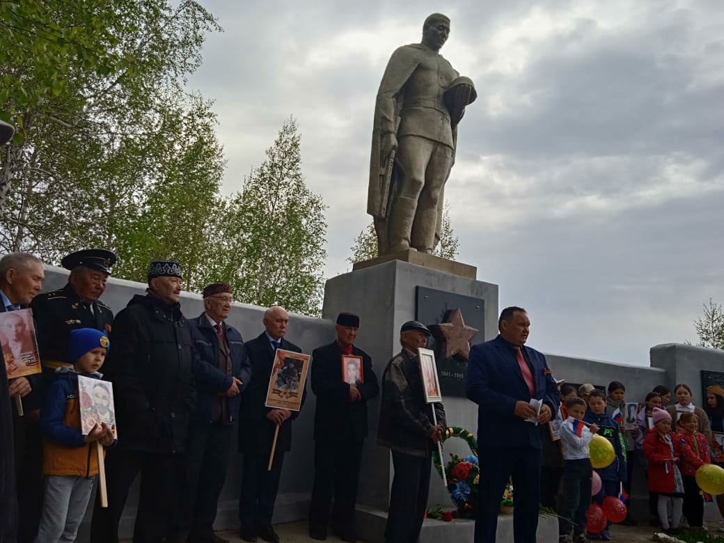 С утра 9 мая в школе чувствовалась особая торжественность. Все ребята в парадной форме, на груди у педагогов и учеников - георгиевские ленточки. В 10 утра колонной, которую возглавлял «Бессмертный полк» жители села двинулись к Обелиску. Педагогический коллектив школы и учащиеся всех классов, приняли участие в праздничном шествие и митинге, посвященном 77-й годовщине Великой Победы. Учащиеся школы вошли в составе колонны «Бессмертный полк». В торжественной и строгой обстановке прошел праздничный митинг. На митинге учащиеся читали стихи о войне и мире.Выступление директора школы Суярембетова И.М. ни кого не оставило равнодушным. В своём обращении ко всем собравшимся, он отметил, что 9 мая — День Победы — святой для каждого из нас праздник и мы, сегодняшние граждане страны, обязаны передать память о Победе, о традициях празднования Дня Победы будущим поколениям. В память о тех, кто отдали свои жизни во имя Победы, была объявлена минута молчания. Все собравшиеся почтили память погибших и возложили живые цветы к памятнику. Это акция - дань памяти и уважения ветеранам, благодаря которым наша страна победила в той ужасной войне и благодаря которым, мы все сейчас живы.
