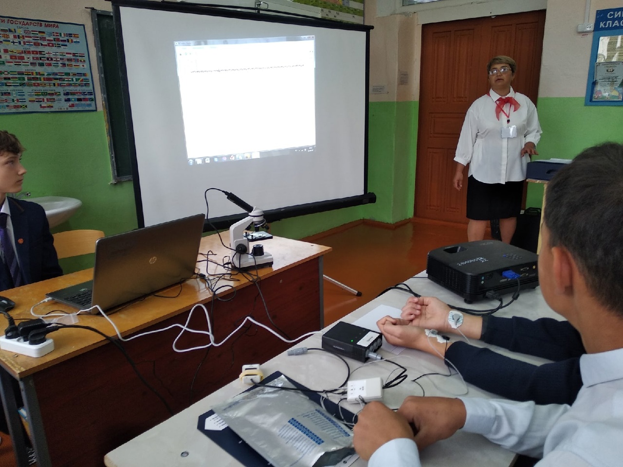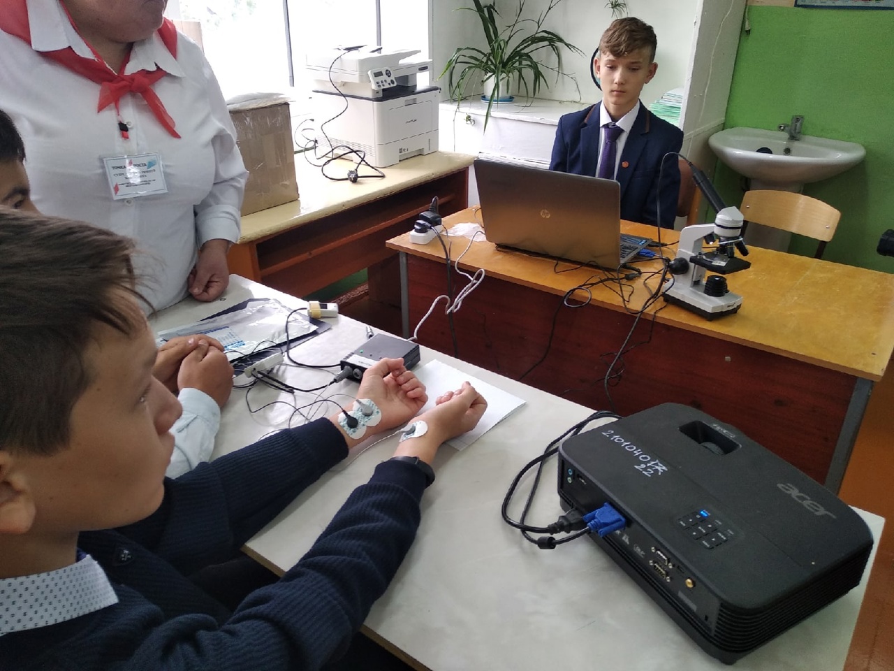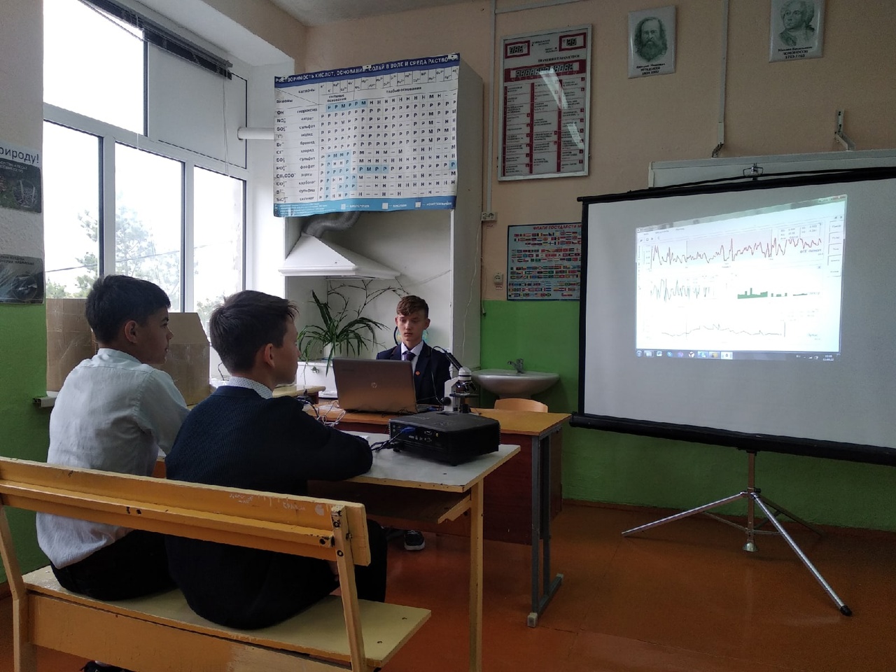 В химической лаборатории провели занятие «Определение рН растворов», демонстрируя возможности нового оборудования. Ученики 9 класса под руководством учителя химии определяли рН растворов гигиенических средств, а также некоторых напитков.