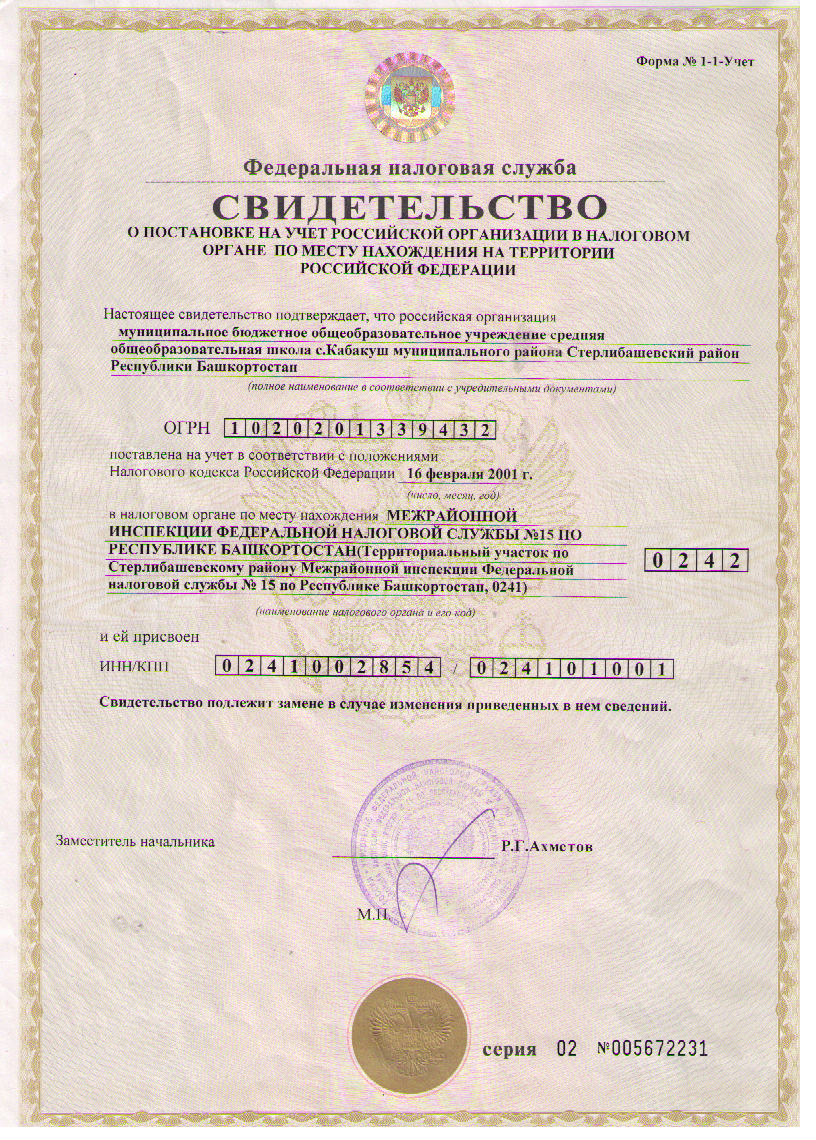 Полное название: Муниципальное бюджетное общеобразовательное учреждение средняя общеобразовательная школа села Кабакуш Муниципальный район Стерлибашевский район Республики Башкортостан